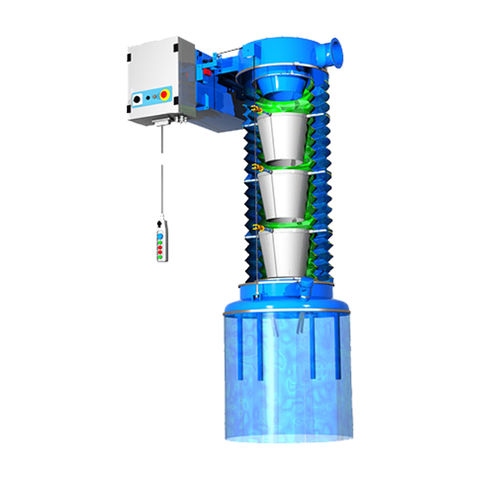 Телескопический загрузчик разработан для направления потока цемента в емкость для хранения, не допуская растраты пылящегося продукта. Может быть оснащен фильтром для сбора цементной пыли, что предотвращает загрязнение воздуха и дает возможность повторного использования цемента. Сильфоны загрузчика исполняются из гибкого материала, покрытого гидрофобным ПВХ, что придает конструкции устойчивость к агрессивным химическим веществам.